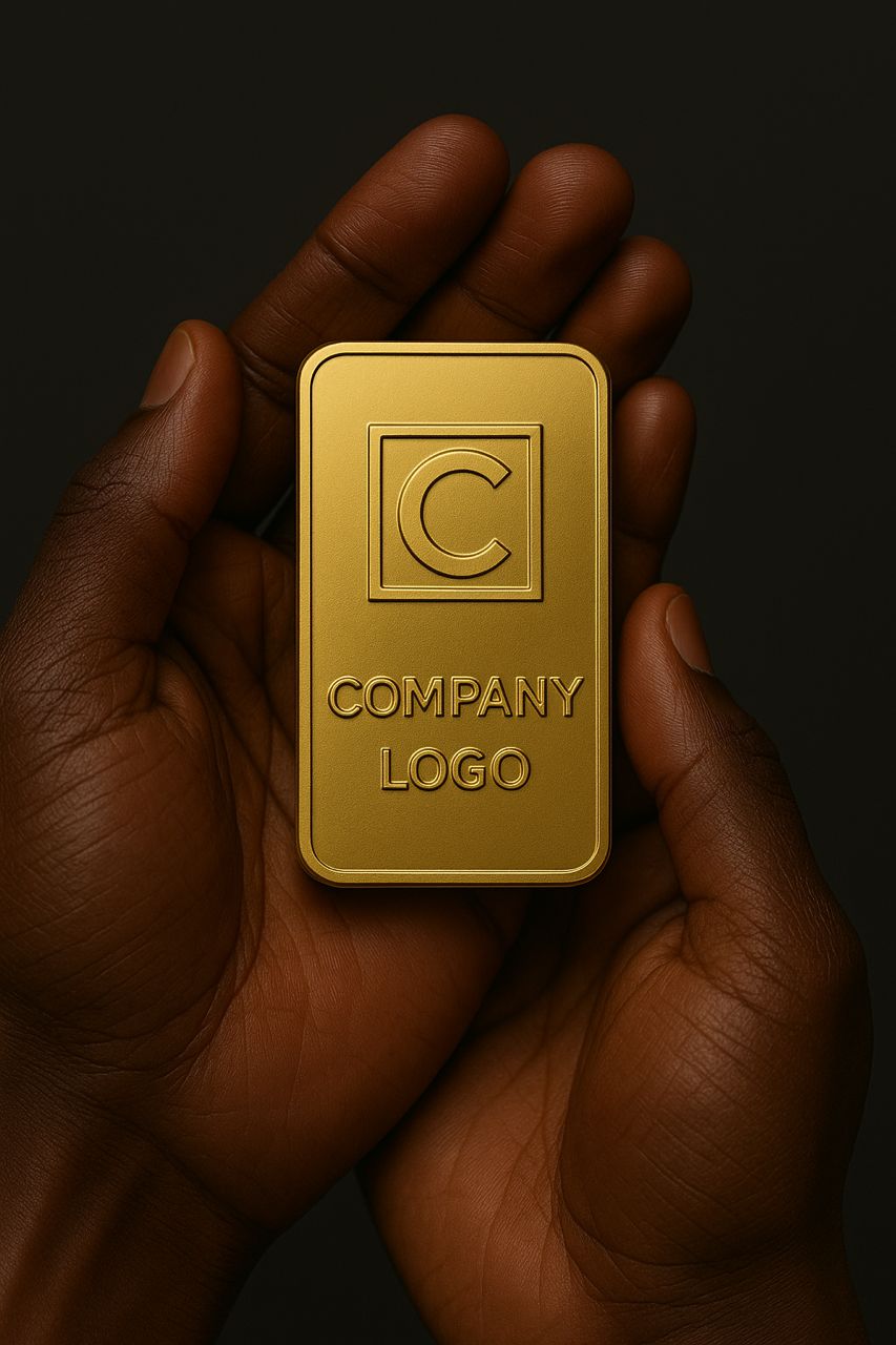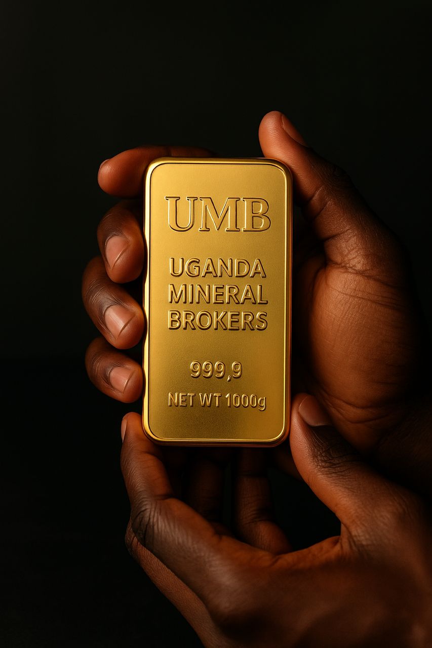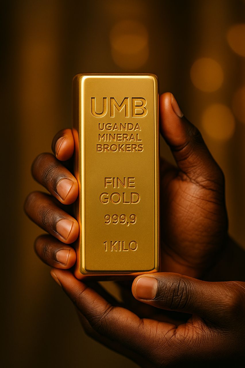 Pure 24K gold bars engraved with corporate branding for prestige and identity. Each bar bears the “UMB – Uganda Mineral Brokers” logo, representing trust, authenticity, and luxury. These bars are refined to 999.9 purity and finished with a mirror-polish surface, suitable for high-end investors, corporate gifts, or asset display.